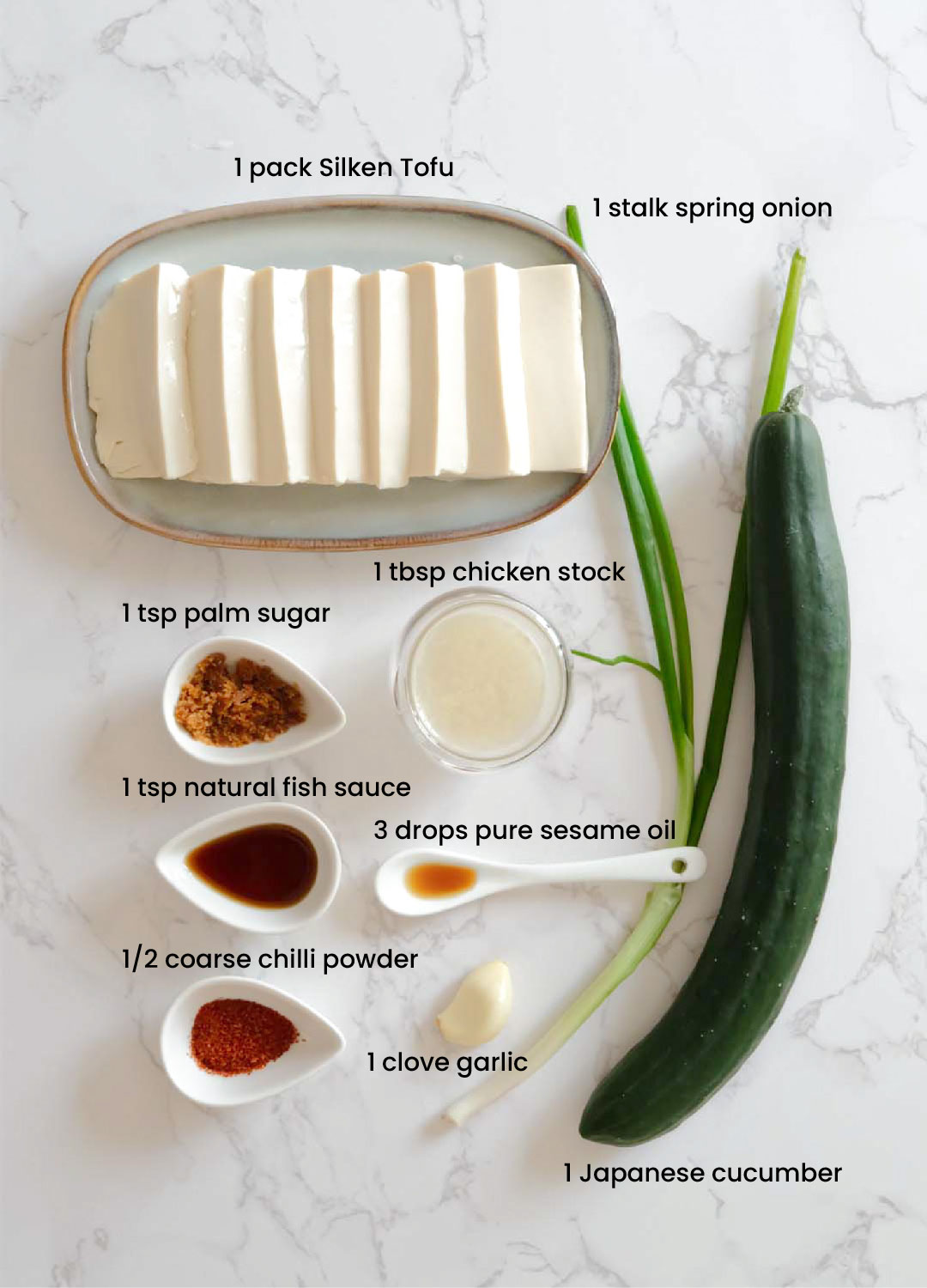 Steamed Silken Tofu with Garlic. No Soy sauce